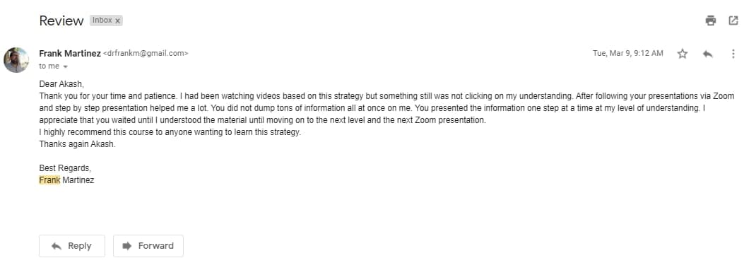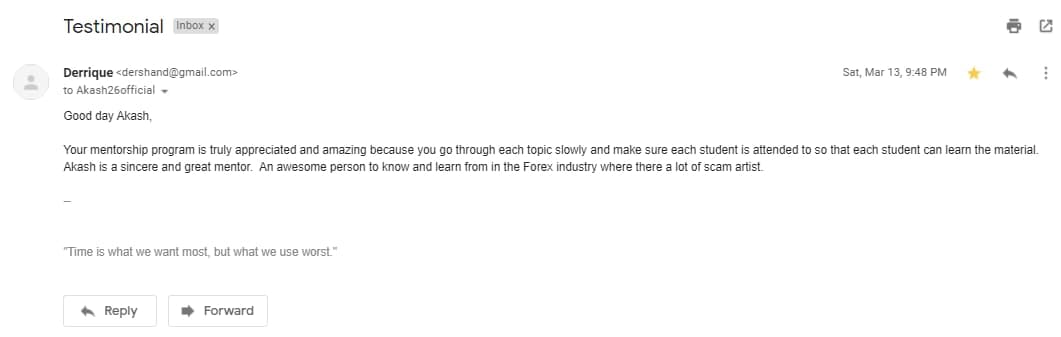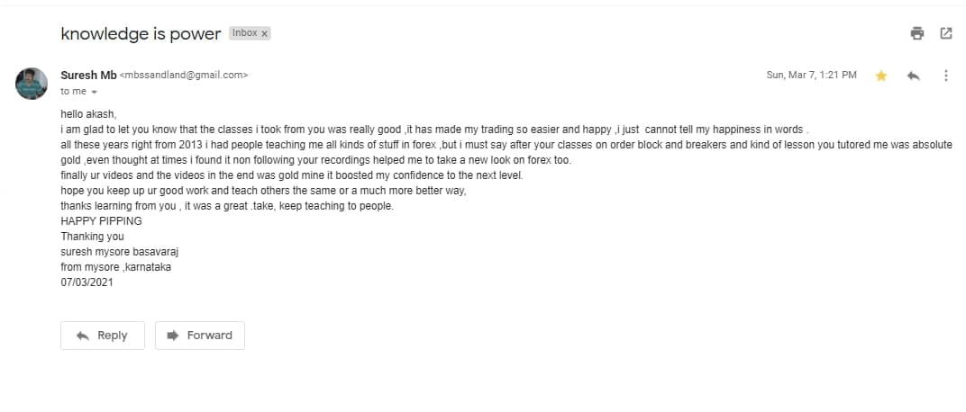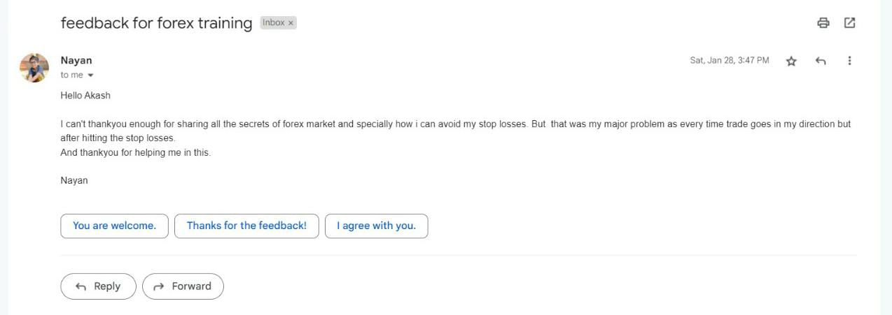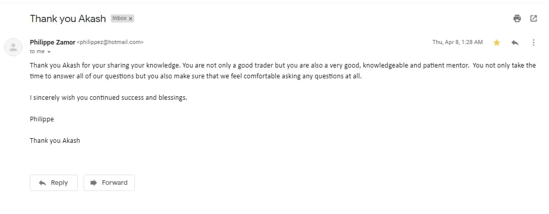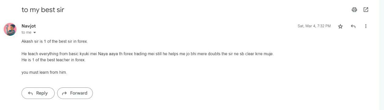 Akash carries rich knowledge in forex trading world, he answers all of my questions to the point and clarifies my doubts. If you are lookin to learn and make money in forex, then I must say he is the best person for this.